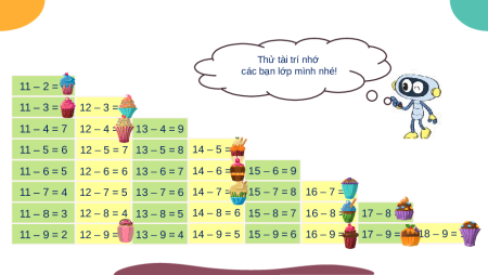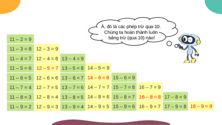 À, đó là các phép trừ qua 10. Chúng ta hoàn thành luôn bảng trừ (qua 10) nào!