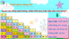 1 Khôi phục bảng trừ NỘI DUNG BÀI HỌC