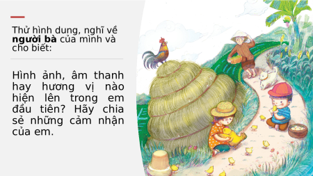 người bà của mình và cho biết: Hình ảnh, âm thanh hay hương vị nào hiện lên trong em đầu tiên? Hãy chia sẻ những cảm nhận của em.