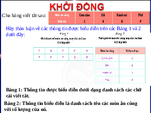 Bảng 1: Thông tin được biểu diễn dưới dạng danh sách các chữ
