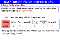 BÀI 2: BIỂU DIỄN DỮ LIỆU TRÊN BẢNG