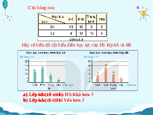 Hãy vẽ biểu đồ cột biểu diễn học lực của HS lớp 6A và 6B a) Lớp nào c p 6B (1ó nhiề 8 > 1 u 6) HS Khá hơn ? b) Lớp nào c p 6A ( ó ít 2 < H 5 )S Yếu hơn ? BIỂU ĐỒ CỘT KÉP