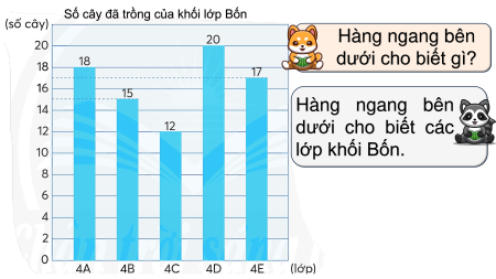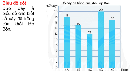 Số cây đã trồng của khối lớp Bốn Biểu đồ biểu thị gì? Biểu đồ biểu thị số cây đã trồng được của khối lớp Bốn