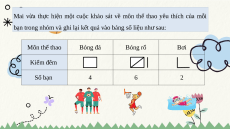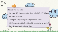 bạn trong nhóm và ghi lại kết quả vào bảng số liệu như sau: Môn thể thao Bóng đá Bóng rổ Bơi Kiểm đêm Số bạn 4 6 2