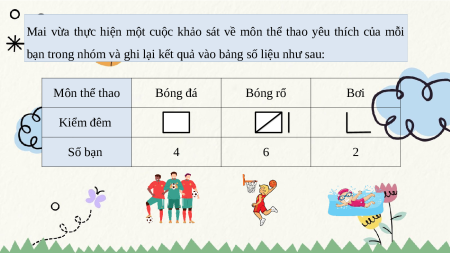 Mai vừa thực hiện một cuộc khảo sát về môn thể thao yêu thích của mỗi