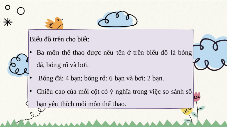 Mỗi cột biểu diễn số bạn yêu 2 thích môn thể thao đó. 1 0