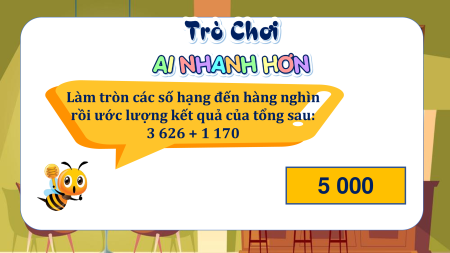 rồi ước lượng kết quả của tổng sau: 3 626 + 1 170 5 000