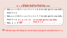 Mỗi lần thay chữ bằng số, ta tính được một giá trị của biểu thức 5 + a