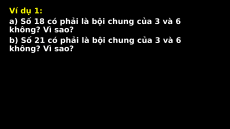 c) Xác định số nhỏ nhất khác 0 trong các bội chung của 2 và 3. Cá Số c nsố hỏ v ừ n a h ở ất t k rhon á g c 0 h tr àn on gg th c ứ ác n b hất ội c v h ừ u a ng ở củtr a on 2 g v h à àn 3 l g à th 6. ứ Số hai đó đ đ ư ư ợc ợc g g ọi ọi llà à b b ội ội cch h u u n n g g c n ủ h a ỏ 2 nhvà ất 3. của 2 và 3.