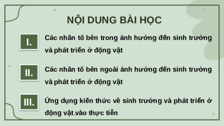 Giáo án Powerpoint Các nhân tố ảnh hưởng đến sinh trưởng và phát triển ở động vật Sinh học 11 Cánh diều