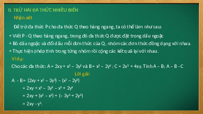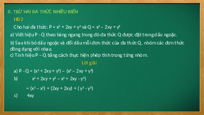 II. TRỪ HAI ĐA THỨC NHIỀU BIẾN