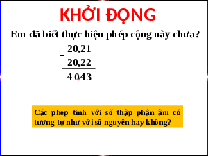 Em đã biết thực hiện phép cộng này chưa? 20,21 + 20,22 4 , 04 3