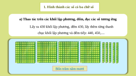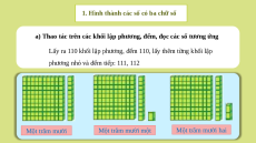 Lấy ra 110 khối lập phương, đếm 110, lấy thêm từng khối lập