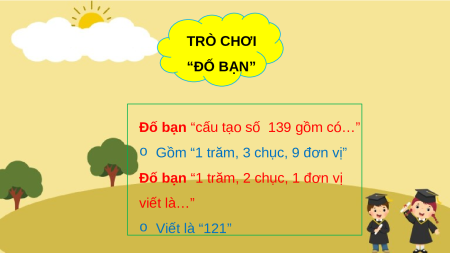 Đố bạn “1 trăm, 2 chục, 1 đơn vị viết là…” o Viết là “121”