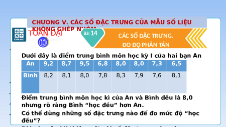 Giáo án Powerpoint Các số đặc trưng đo độ phân tán Toán 10 Kết nối tri thức