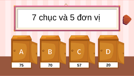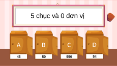 KHỞI ĐỘNG 5 chục và 0 đơn vị A B C D 45 50 550 54 7 chục và 5 đơn vị A B C D 75 70 57 20