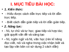 • - Hiểu đ ược cách dẫn trực tiếp và lời dẫn trực tiếp.