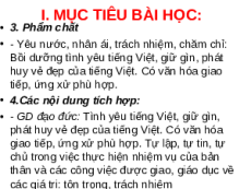 • - GD đạo đức: Tình yêu tiếng Việt, giữ gìn,
