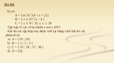 d) Tập hợp D các số tự nhiên x mà x N* . Trả lời: Ta có: