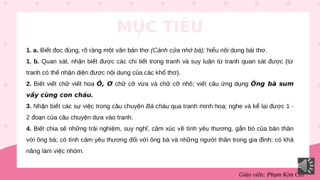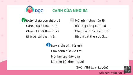 1. a. Biết đọc đúng, rõ ràng một văn bản thơ (Cánh cửa nhớ bà); hiểu nội dung bài thơ.