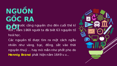Hennig Brand phát hiện năm 1649 v.v... NGUỒN GỐC RA 01 ĐỜI