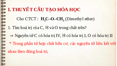kết trong các công thức sau? H C 3 CH2 OH H C 3 O CH3 Bài 11 CẤU TẠO HÓA HỌC HỢP CHẤT HỮU CƠ NỘI DUNG BÀI
