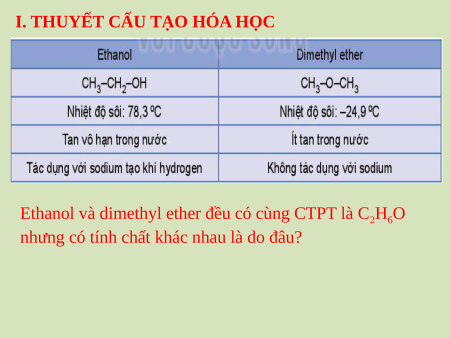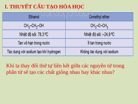 I. THUYẾT CẤU TẠO HÓA HỌC