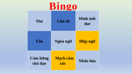 Bingo Hình ảnh Thơ Chủ đề thơ Vần Ngôn ngữ Điệp ngữ