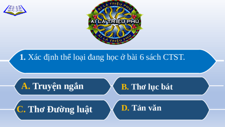 1. Xác định thể loại đang học ở bài 6 sách CTST. A. Truyện ngắn B. Thơ lục bát