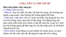 I. MỤC TIÊU CỤ THỂ CHỦ ĐỀ