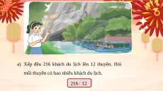 a) Xếp đều 216 khách du lịch lên 12 thuyền. Hỏi