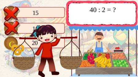40 : 2 = ? A 15 B 10 C 20 300 : 3 = ? A 100 B 90 C 110