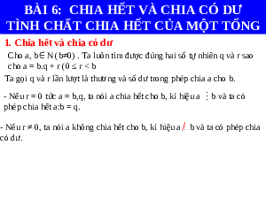 BÀI 6: CHIA HẾT VÀ CHIA CÓ DƯ