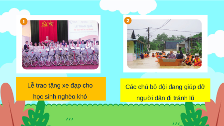 Các chú bộ đội đang giúp đỡ học sinh nghèo khó người dân đi tránh lũ