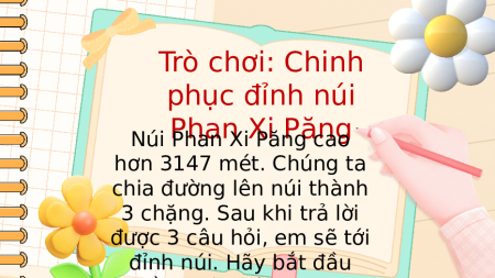 BÀI 2: BẠN NAM, BẠN NỮ Trò chơi: Chinh phục đỉnh núi Phan Xi Păng Núi Phan Xi Păng cao hơn 3147 mét. Chúng ta