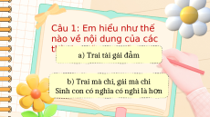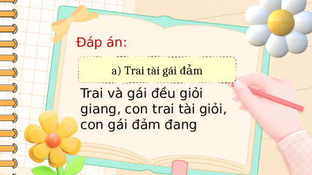 nào về nội dung của các thành ngữ tục ngữ sau: a) Trai tài gái đảm b) Trai mà chi, gái mà chi