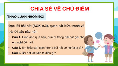 Đọc lời bài hát (SGK tr.3), quan sát bức tranh và