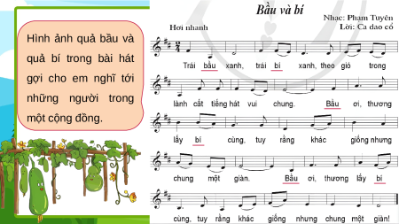 • Câu 1. Hình ảnh quả bầu, quả bí trong bài hát gọi cho em nghĩ đến ai?