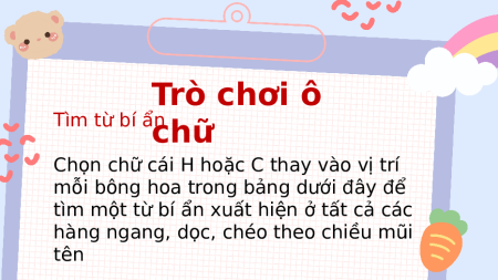 Bài 3 CÓ HỌC MỚI HAY HA Trò chơi ô Tìm từ bí chữ ẩn