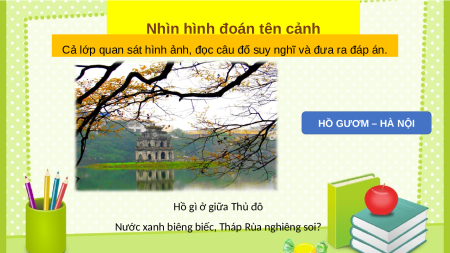Cả lớp quan sát hình ảnh, đọc câu đố suy nghĩ và đưa ra đáp án.