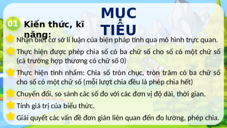 Giải quyết các vấn đề đơn giản liên quan đến đo lường, phép chia. MỤC 02 Năng lực chú TIÊU trọng: