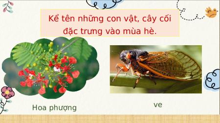 Kể tên những con vật, cây cối đặc trưng vào mùa hè. Hoa phượng ve