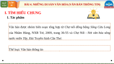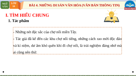 BÀI 4. NHỮNG DI SẢN VĂN HÓA (VĂN BẢN THÔNG TIN) VĂN 10 I. TÌM HIỂU CHUNG 1. Tác phẩm
