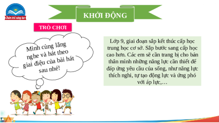 Hoạt động trải nghiệm, hướng nghiệp 9 KHỞI ĐỘNG TRÒ CHƠI Mình cùng lắng nghe và hát theo giai điệu của bài hát sau nhé! KHỞI ĐỘNG TRÒ CHƠI