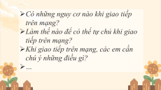 Nghe nói chuyện về an toàn khi giao tiếp trên mạng. Khi giao tiếp trên mạng, các cháu không nên để lộ thông tin cá nhân