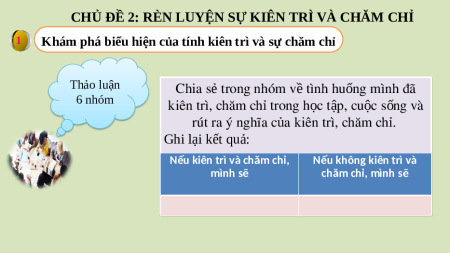Giáo án Powerpoint Chủ đề 2 HĐTN, hướng nghiệp 7 Chân trời sáng tạo: Rèn luyện sự kiên trì và chăm chỉ