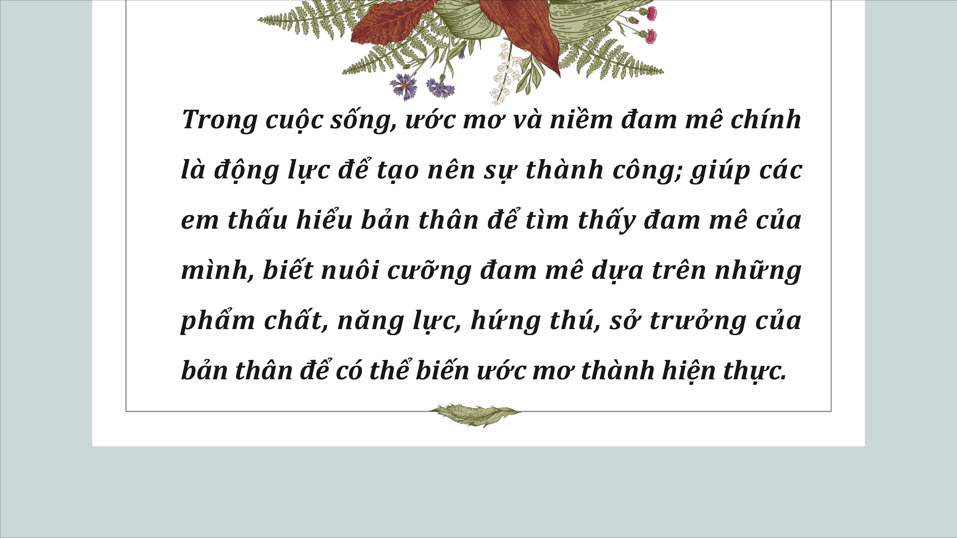 Trong cuộc sống, ước mơ và niềm đam mê chính