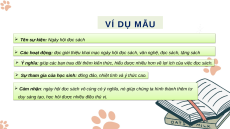 Các hoạt động: đọc giới thiệu khai mạc ngày hội đọc sách, văn nghệ, đọc sách, tặng sách