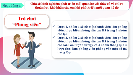 lượt chơi làm phóng viên phỏng vấn một số HS trong lớp.