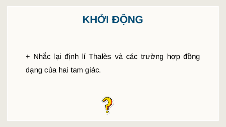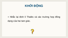 + Nhắc lại định lí Thalès và các trường hợp đồng dạng của hai tam giác.